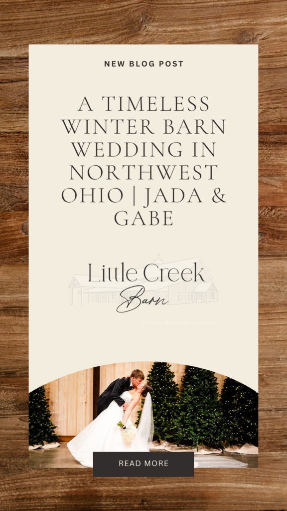 Jada and Gabe’s winter barn wedding in Northwest Ohio was a beautiful example of how winter celebrations can feel just as magical. We were honored to be part of their day and to watch their story unfold in a space filled with love and family. If you’re dreaming of a winter wedding that feels timeless and welcoming, Little Creek Barn is a place where those moments come to life. Get in touch to schedule your tour!