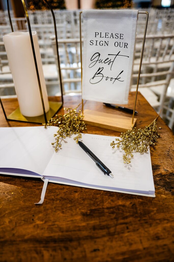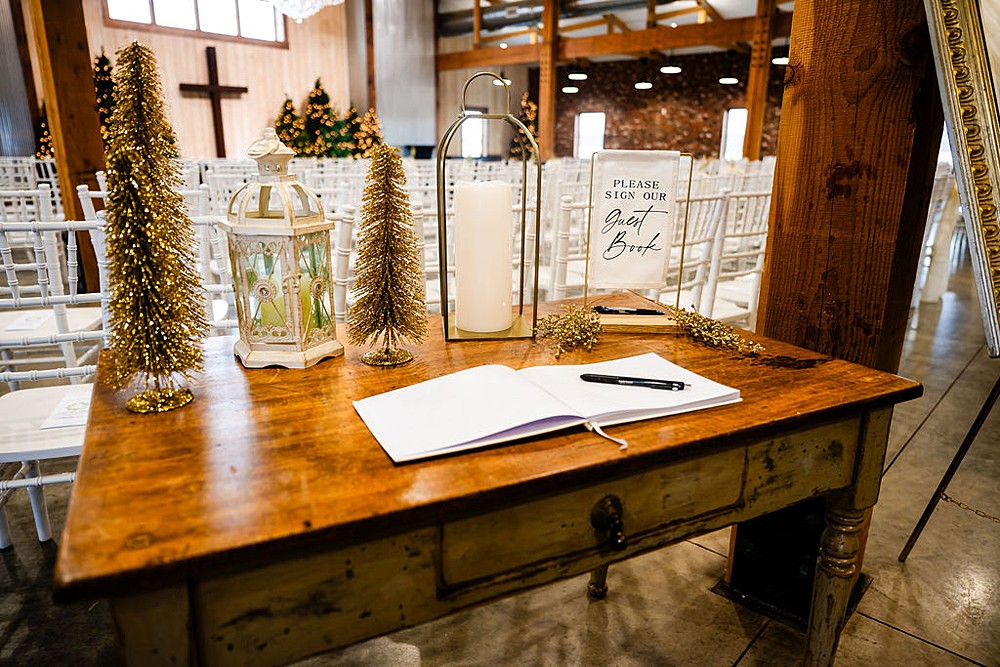 What truly sold them was seeing the ceremony space transformed for the season, filled with glowing Christmas trees and surrounded by the warmth of the décor available through our Something Borrowed collection.