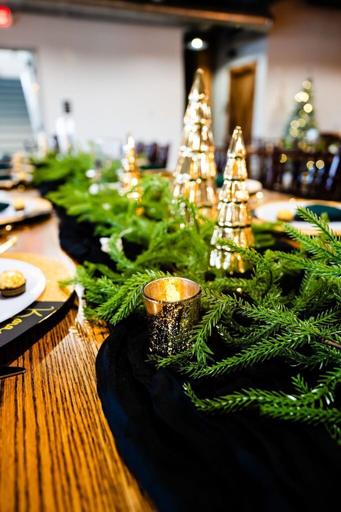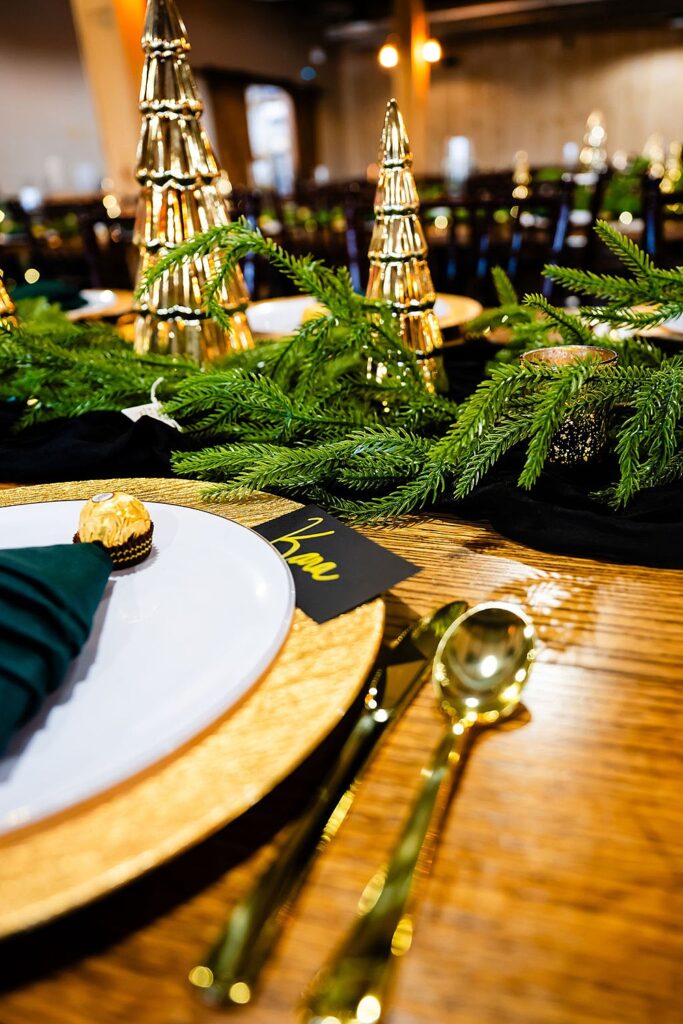 Jada and Gabe chose a classic black-and-white palette, accented with Christmas trees to bring the season to life. Black-and-white attire tied the wedding party together, creating a cohesive, timeless look that complemented the season beautifully. The result was an elegant, winter wedding that felt elevated without losing its warmth.