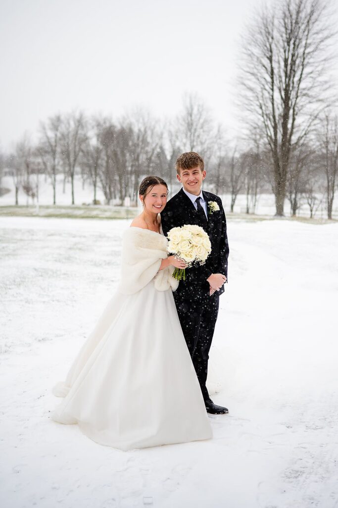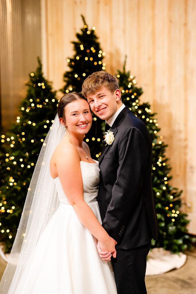There’s something special about hosting a winter barn wedding in Northwest Ohio…especially when the space is dressed for Christmas! The glow of trees, the warmth of gathering indoors, and the calm that comes with a winter celebration set the tone for Jada and Gabe’s wedding day at Little Creek Barn. Their black-and-white palette, Christmas accents, and faith-centered ceremony created a celebration that felt classic and full of meaning, proving just how beautiful winter weddings can be!